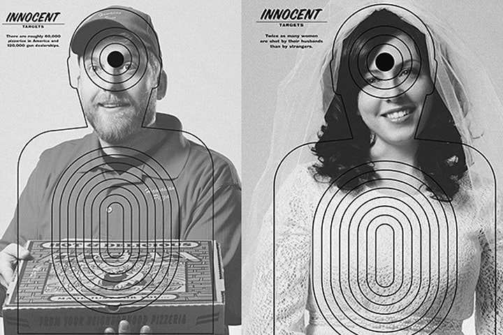 Artist Anthony Burrill released a series of posters, Innocent Targets. The project was developed in cooperation with a creative studio, Banana & Associates. The goal of the project is to spread the word about the countless number of innocent victims killed by guns in the USA.