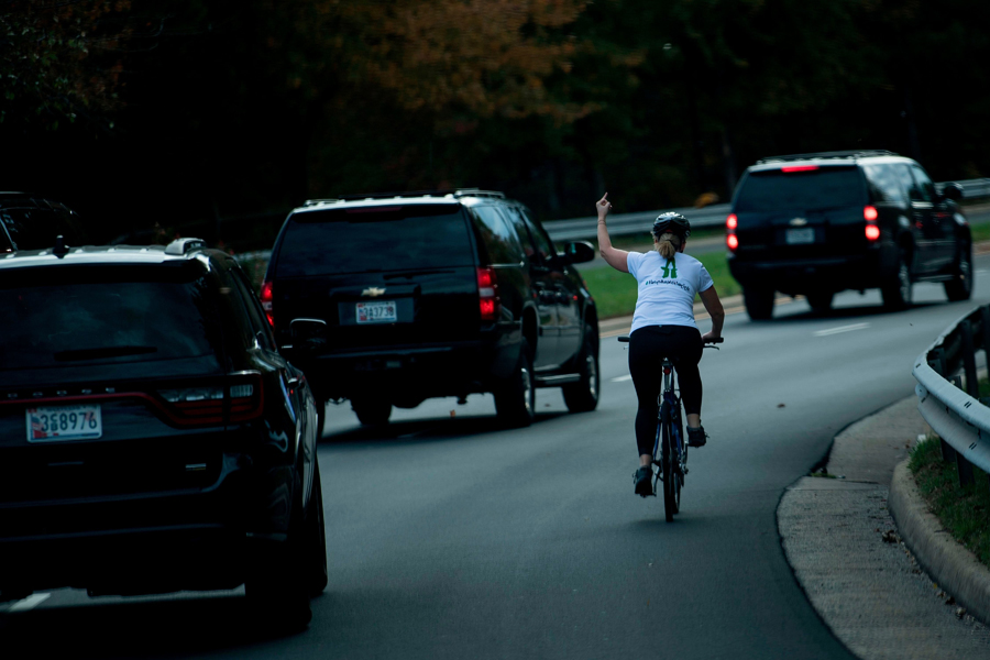Американку уволили за фото, где она показывает средний палец кортежу Трампа 1 532 Alyona Agadzhikova 07.11.2017