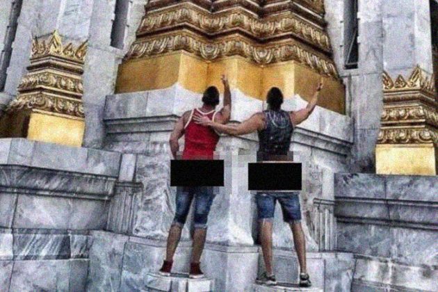 Полиция Таиланда задержала двоих американских туристов, опубликовавших в инстаграме фото, где они запечатлены на фоне храма Ват Арун в Бангкоке с обнаженными ягодицами. Мужчин уже оштрафовали на $150 каждого, но в дальнейшем им может грозить и более серьезное наказание — вплоть до тюремного заключения, пишет Huffington Post.
